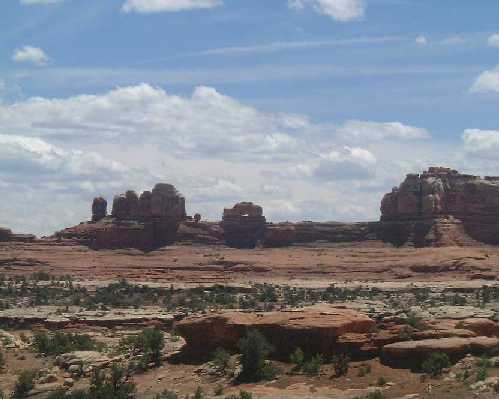 7月17日(火) もう1泊したい・・・とかなり、真剣に思いつつ 宿の前で写真をとって、出発☆ ちなみに、Desert Rose Innというモーテルです 皆さん、この近くを訪れる際はぜひ!(笑) この日、まず目指したのはキャニオンランズ 南の入り口から入りました でも、この写真は実は入り口より手前☆ まだ公園内じゃないのに、こんな勇壮な景色が じゃんじゃん続くんです(^-^) |