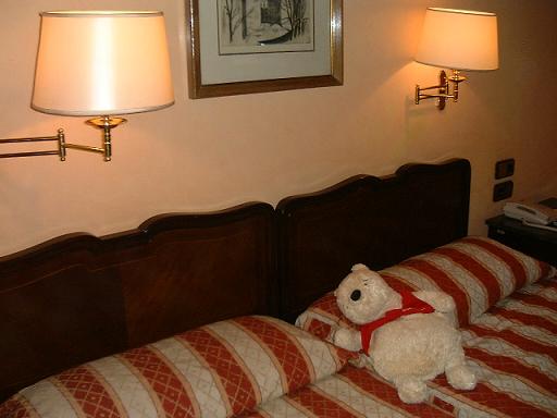 ホテルのロビー/本日のぷー。「いいね、このベッド。。」