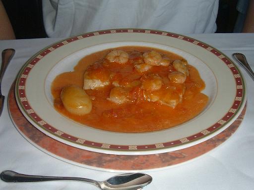 郷土料理の煮込み(左)と海老の炒め物(右)。煮込みがスパイシーで◎!