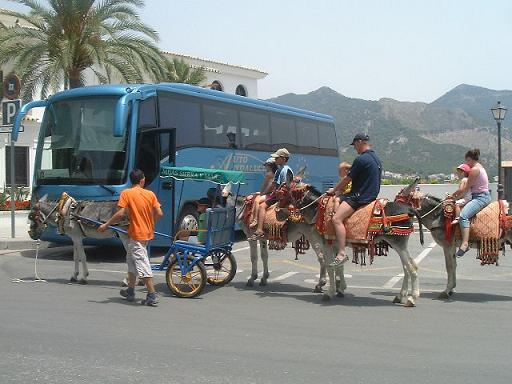 暑さ対策のカーサブランカ。スペイン語で「白い家」/名物のロバタクシー♪