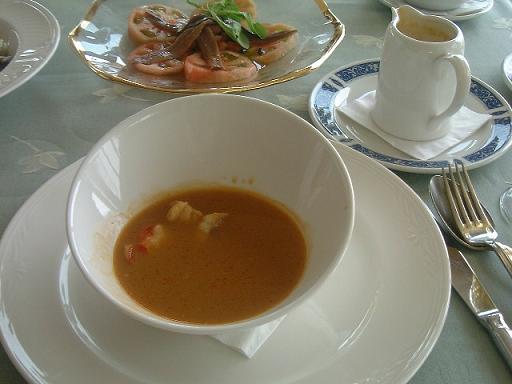 トマトとアンチョビのサラダ/あさりのガーリックバター/ロブスタースープ