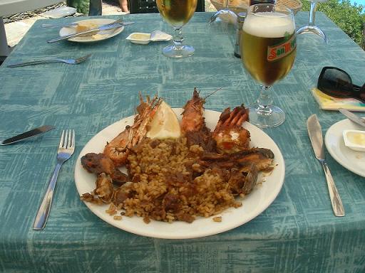 お昼はプール横で魚介のパエリア。